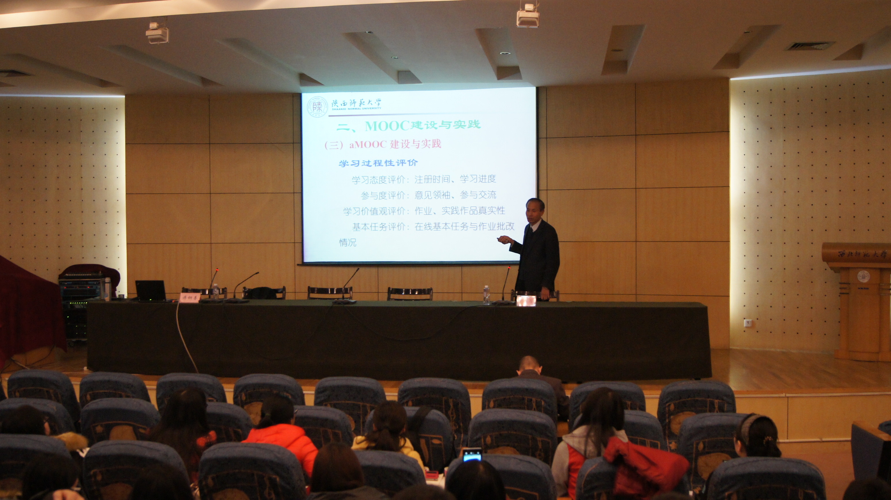 12月14日,应我院邀请,陕西师范大学博士生导师傅钢善教授在图书馆多功能报告厅作了题为《MOOC课程建设与实践》的学术报告。我院全体博士、硕士研究生共计100余人参加了报告会。