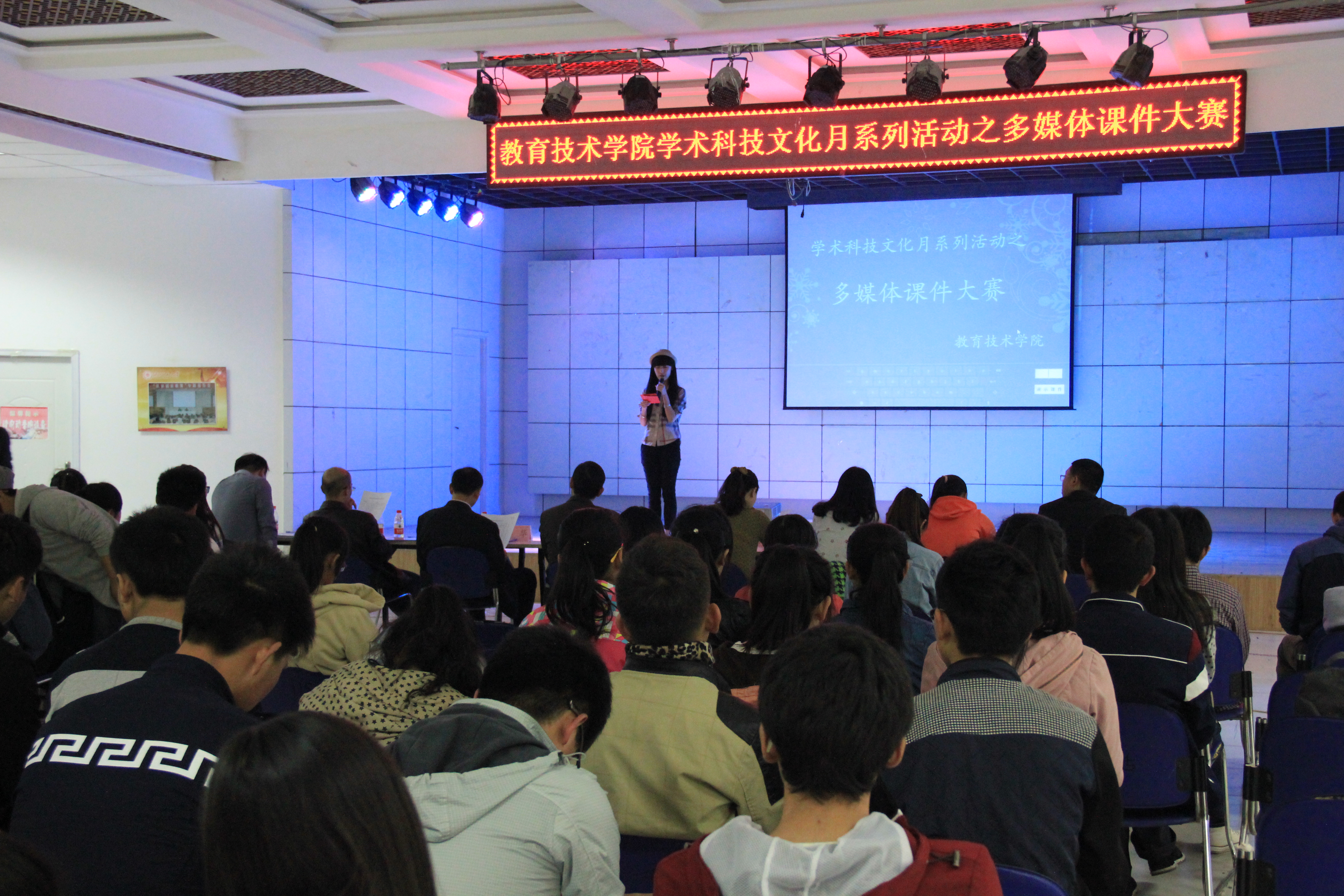 2015年4月16日晚,我院在大学生活动中心举办了太阳成集团tyc7111cc主页本科生学术科技文化月系列活动之多媒体课件大赛。我院教师李建珍、李华、赵健、樊敏生担任此次大赛评委。党委副书记汪海燕、团委书记任思泉,辅导员李亮、张会会及我院150名学生参加了此次比赛。