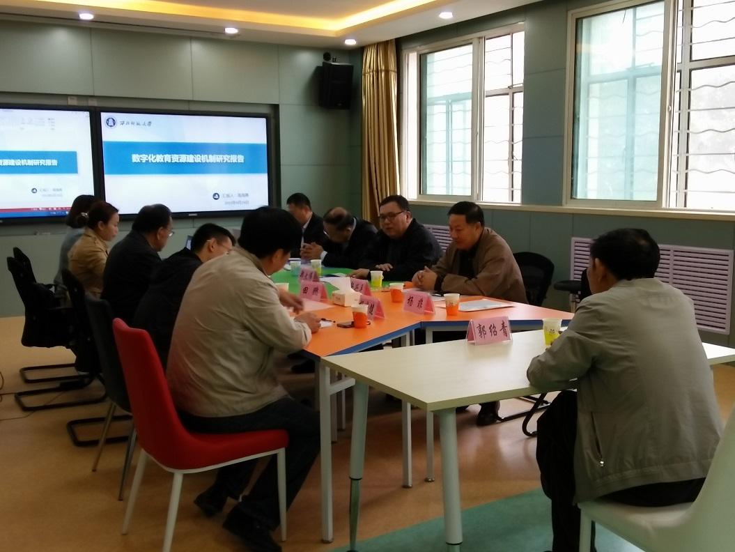 2015年9月29日上午,中央电化教育馆组织多位专家来我校对“教育云规模化应用示范项目”的子课题“数字教育资源建设机制研究”进行结题验收。会议在教学6号楼智慧教室召开,由中央电教馆资源综合部主任郑大伟主持,丁光明、潘克明、杨晓健、刘雍潜、赵建华、田鹏、轩兴平、杨非等领导与专家参会审议。