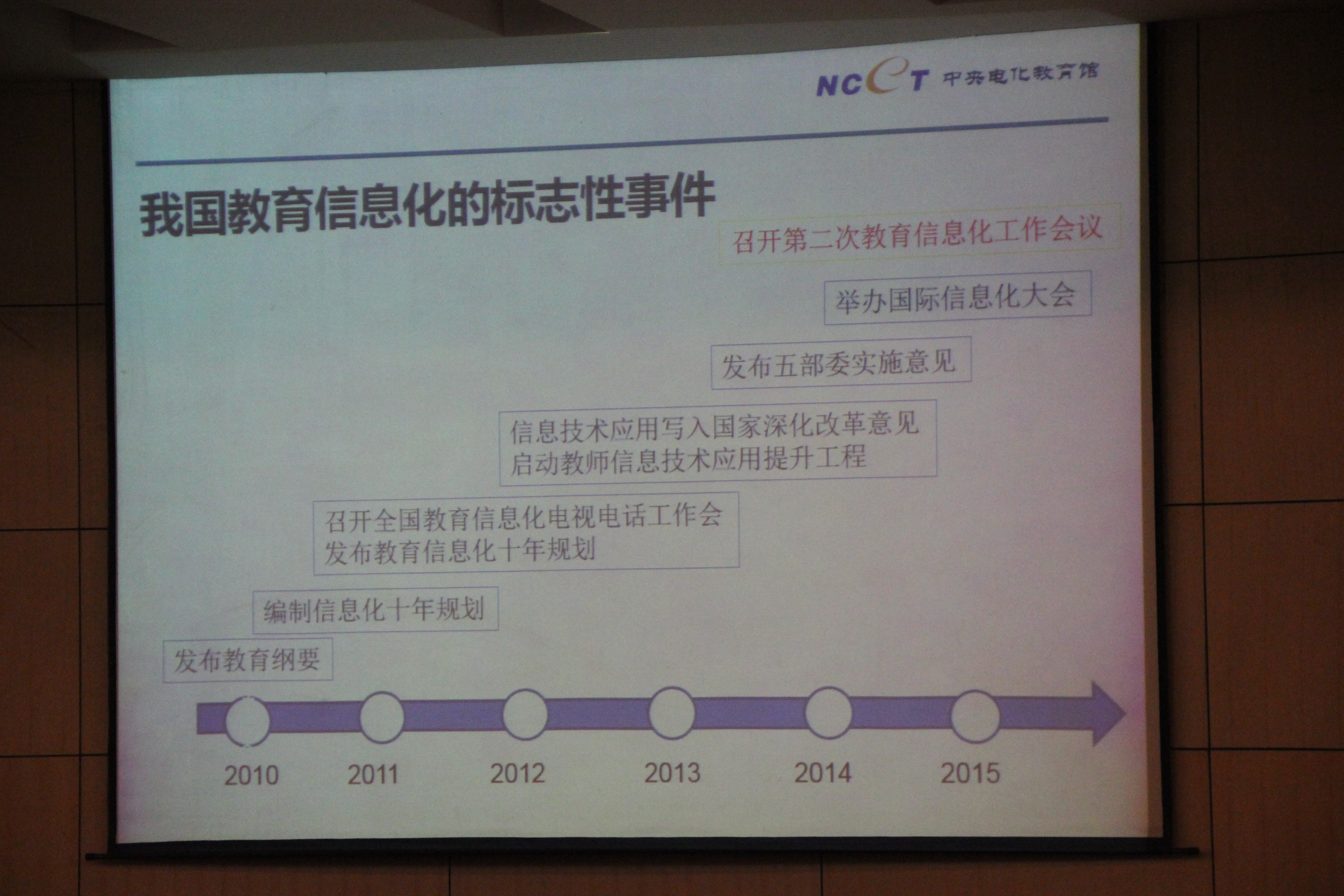 报告中,王珠珠馆长首先对近年来国家教育信息化政策进行解读,分析了国家教育信息化所面临的新形势新要求,认为我国教育信息化已经进入深度融合阶段,在“互联网+”行动计划的推动下,要调整学校、企业之间的供求关系,通过“推动技术进步、教育组织变革、提升实体经济创新力和生产力三个手段,形成广泛的经济社会发展新动态”,并提出“十三五”时期教育信息化发展“三基本、四提升、四拓展”的新要求;其次,从信息技术教学应用实践的视角提出了利用优质数字教育资源进行教学、利用双向视频会议系统上课、利用网络平台开展教研、利用网络学习空间教与学、利用网络活动学与教、利用学习分析技术促进学与教、线上线下结合的学习等七种日臻成熟的信息技术教学应用模式;最后,提出了“科学的设计、深刻的认识、恰当的策略”等教育信息化能够取得成绩的几点启示。