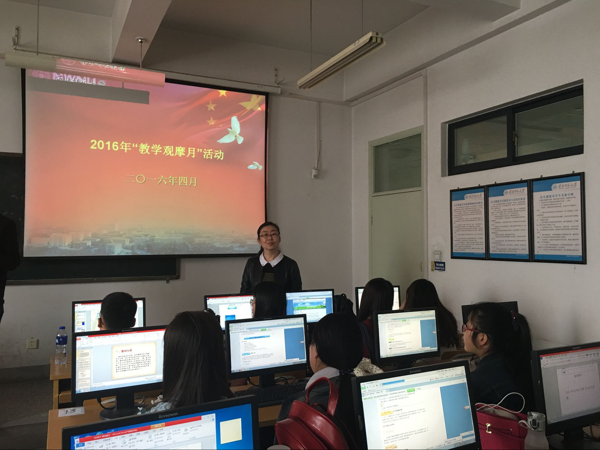 2016年4月22日上午,我院教师常咏梅副教授在10-E402教室主讲了学校2016年教学观摩月活动第十四场观摩课,全校近80名青年教师参加教学观摩活动。太阳成集团tyc7111cc主页党委书记李发军,党委副书记、副院长汪海燕,副院长俞树煜参加了教学观摩活动。