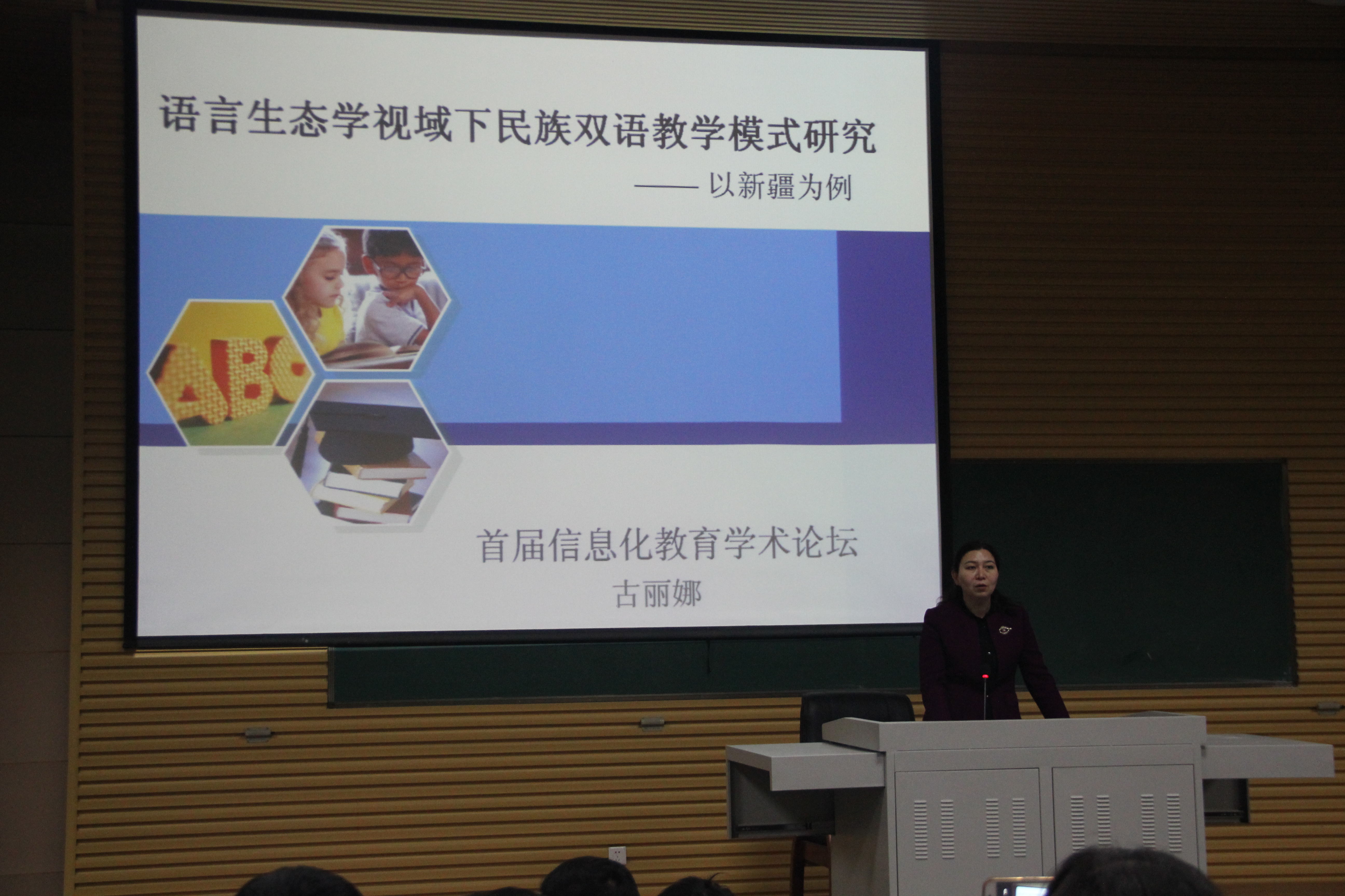 2016年4月28日下午,学院“首届信息化教育学术论坛”第十二讲在新校区综合楼学术报告一厅举行,主讲人张瑛副教授、古丽娜博士和张尧助教分别作了题为“互联网时代的人和事”、“语言生态学视域下民族双语教学模式研究”和“职业核心能力的培养”的报告,学院全体教师、研究生及部分本科生300余人参加了学术论坛。