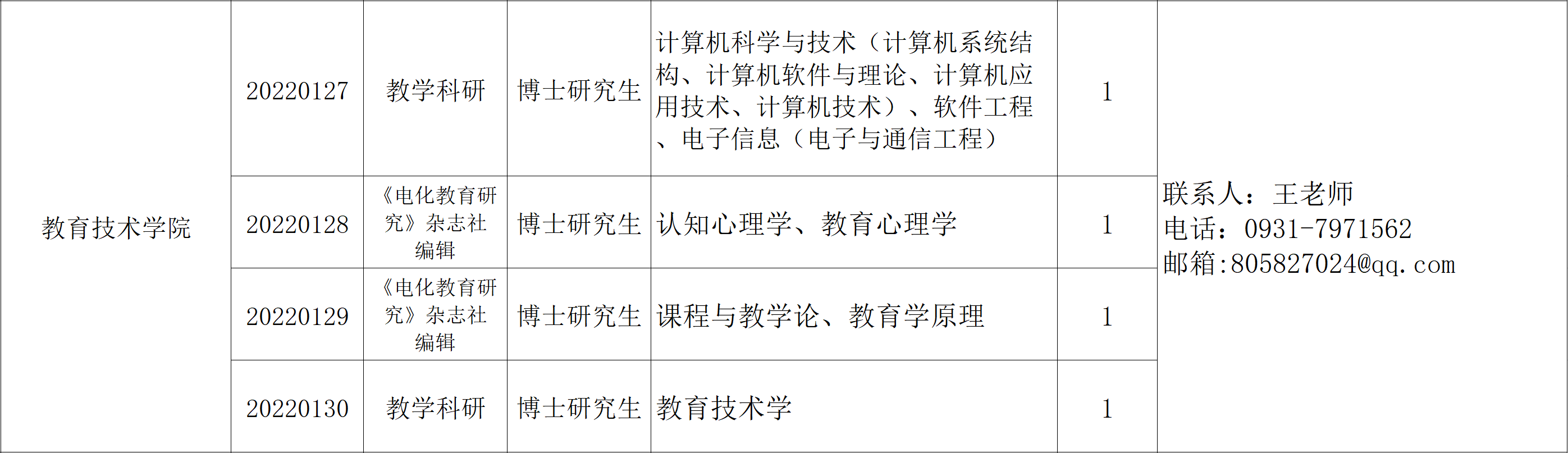 学校人事处电话:0931-7971991