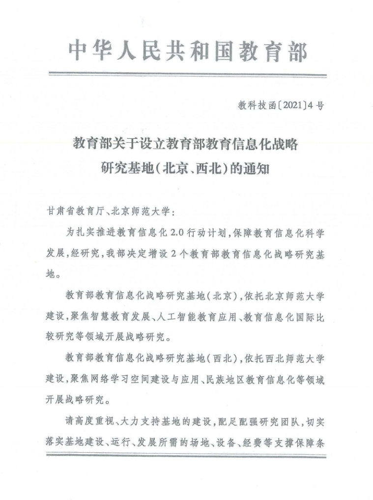 教育部教育信息化战略研究基地(西北)是2021年经教育部批准依托太阳成tyc7111cc建设,聚焦网络学习空间建设与应用、民族地区教育信息化等领域开展战略研究的专门研究机构,是我国教育信息化战略研究的重要平台之一。