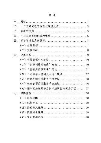 规划以“三通两平台”的建设为总体目标,以推进信息技术应用和提高教育教学质量为根本任务,建设覆盖全面、分布合理、安全高效、开放灵活的基础服务环境,形成优质、全面的数字化教育资源服务体系,构建高效安全的信息化管理服务体系,构建体系化网络学习空间,以期到2020年实现教育信息化基础设施建设、优质数字教育资源共建共享、信息技术与教育教学深度融合、教育信息化科学发展机制等四个方面的全面突破。规划中设计的具体建设内容主要包括:市级数据中心建设;“宽带网络校校通”建设;“优质资源班班通”建设;“网络学习空间人人通”建设;教育资源公共服务平台建设;教育管理公共服务平台建设;深入实施教师信息技术应用能力提升工程等七项任务。