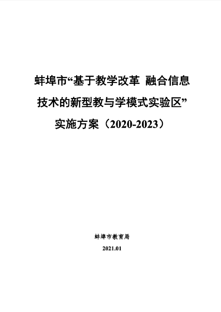 《蚌埠市“基于教学改革融合信息技术的新型教与学模式实验区”实施方案(2020-2023)》