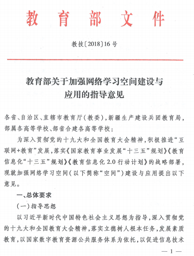 为全面加强网络学习空间建设与应用,充分发挥网络学习空间在优化资源配置、重构学习环境、变革教学模式、重塑评价方式、创新服务模式和提升教育治理水平等方面的作用,加快形成“互联网+教育”的新生态,在教育部科技司的支持下,由郭炯教授牵头,组建了来自高校、各级电教馆、教研部门和空间应用示范校的专家团队,开展了全国范围的网络学习空间调研,明确了空间建设与应用的现状,剖析了存在的问题及发展需求,经过多轮专家咨询和对教育部各相关司局、各级电教馆的意见征询,最终形成了《加强网络学习空间建设与应用的指导意见》。