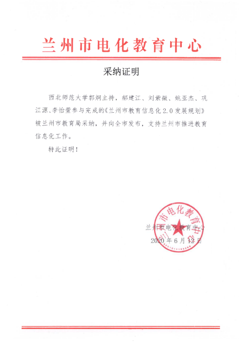 为深入推进兰州市教育信息化2.0工作开展,破解区域教育信息化发展不均衡、应用不深入、特色不突出等实际问题,明确兰州市教育信息化2.0工作推进的目标任务及重点工程,在兰州市电化教育中心的支持下,由郭炯教授牵头,全面调研了解了兰州市各县区教育信息化建设与应用现状,分析了区域教育信息化发展的成效、困境及需求,结合《教育信息化2.0行动计划》《中国教育现代化2035》等政策文件要求,聚焦区域本地发展情况及特色需求,编制了《兰州市教育信息化2.0发展规划》,明确了兰州市教育信息化2.0发展的基础环境智能化提升、数字校园建设均衡发展、优质资源共建共享、信息技术与教学融合应用、STEAM/创客教育服务体系建设、人工智能教育试点应用六大重点工程。