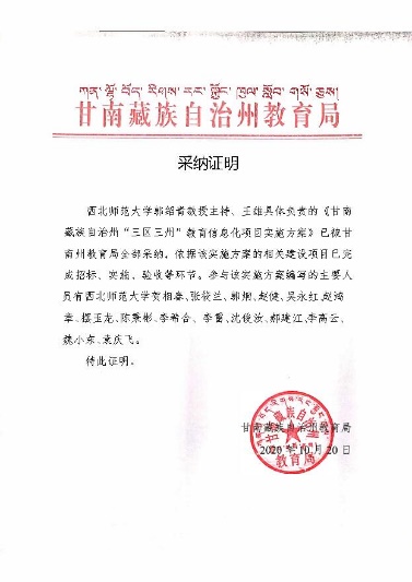 该实施方案被甘南州教育局采纳并指导后续相关项目的招标、建设、验收等工作,推动了甘南州教育信息化工作迈上新的台阶,实现管理效能提升、教育均衡发展、教育教学质量和教育服务水平的全面提高。