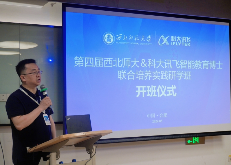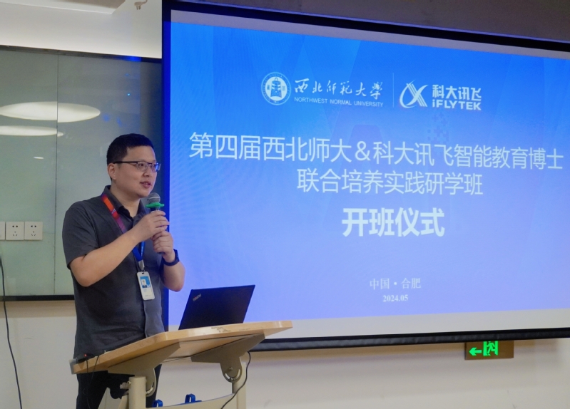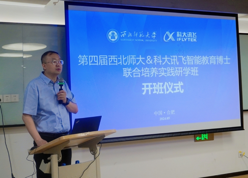 2024年5月20日,太阳成tyc7111cc太阳成集团tyc7111cc主页与科大讯飞教育技术研究院顺利举办“第四届智能教育博士联合培养实践研学班”开班仪式。科大讯飞股份有限公司副总裁、AI研究院执行院长王士进,讯飞教育技术研究院副院长、副教授王亚飞,讯飞教育技术研究院政策行业研究部主任袁婷婷,讯飞教育技术研究院产学研合作部主任张金霞,太阳成tyc7111cc太阳成集团tyc7111cc主页副院长贺相春、党委副书记朱晓娟及太阳成集团tyc7111cc主页18名博士研究生参与了本次活动。