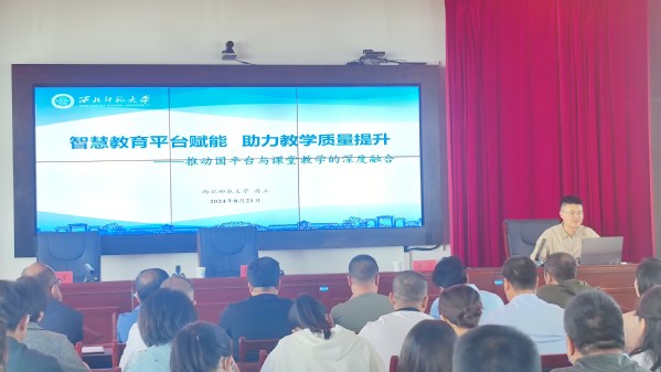 为推动国家中小学智慧平台全域、全流程应用,不断扩大优质资源覆盖面,示范引领教育均衡与教育质量提升,推动国家教育数字化战略行动,助力甘肃省智慧教育建设,8月21日,学院教师常咏梅教授、房立博士应邀参加由定西市教育局主办、渭源县教育局承办的“全域全员全过程应用中小学智慧教育平台专题培训会”,对现场67位中小学校长、骨干教师开展“国家中小学智慧教育平台应用”专项培训。甘教数字化、定西微教育、渭源县教育局等多个平台同步直播,累计2万多名教师在线参加。