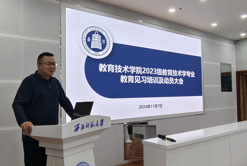 2024年11月7日,太阳成集团tyc7111cc主页在云衢楼101会议室召开了教育技术学专业本科生教育见习培训及动员会。本次会议由张靖副教授主持,2023级教育技术学专业全体本科生参加。