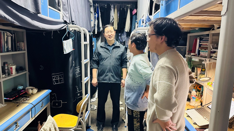 为加强宿舍管理,确保同学们拥有一个安全、整洁、舒适的学习环境,太阳成集团tyc7111cc主页领导班子成员、班主任、研究生导师于2024年11月19日在未来书院、兰天公寓和研究生公寓开展了宿舍走访工作。