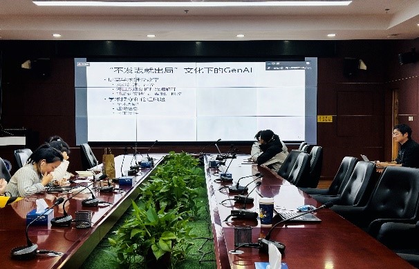 吴忭教授的讲座围绕师-机-生三元关系、人机合作研究模式和GenAI变革教育研究范式等方面展开。在讲座中,吴忭教授结合已有研究重点诠释了人工智能在研究选题、文献综述、研究计划、测评工具和数据分析、量化分析、话语分析、结果讨论、论文撰写与修改以及审稿意见回复等环节上的赋能作用。
