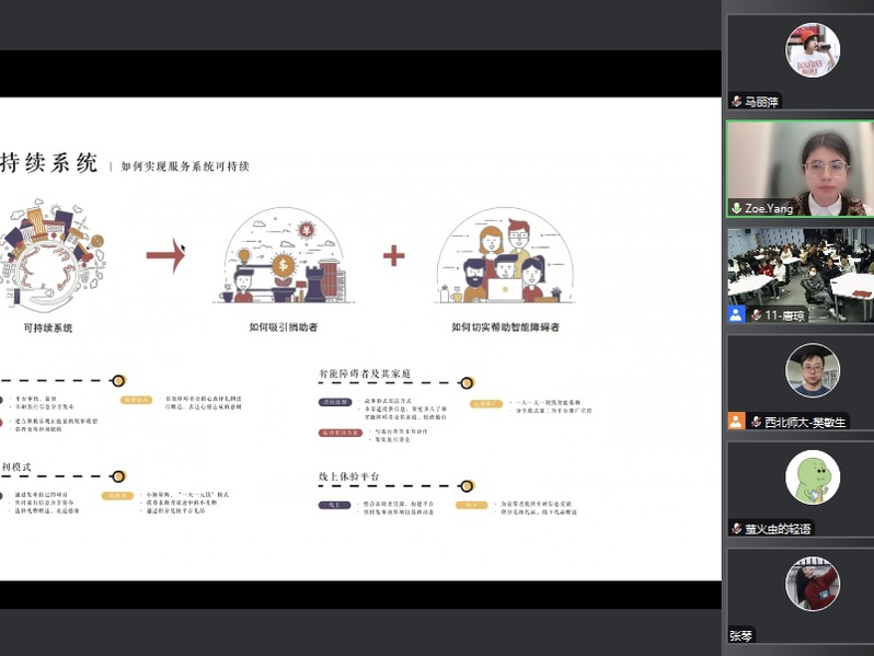 讲座中,杨梓围绕交互设计,从本体论、发展史、设计观念至案例进行了全面分析。她讲解了交互设计的历史、变革及其用户界面设计和用户体验设计的划分。通过交互设计的五要素,她阐述了传统设计向交互设计转型的内在逻辑,强调了当前设计界正逐步聚焦于应对复杂与挑战性问题的新趋势。特别是在探讨DESIS框架的拆解时,她详尽阐述了设计价值观与原则变迁的六大维度,辅以丰富的实际案例与经典项目,使理论讲解生动有趣。杨梓还分享了自己的交互设计实践经验,包括星声、SOAP-ING、GIVING LUNCH三个项目,全方位展示了从研究初衷、概念阐释、机遇挖掘、用户旅程规划、信息架构设计、视觉化呈现到社会互动效应的每个细节,生动展现了狭义交互设计向广义领域拓展的广阔视野。