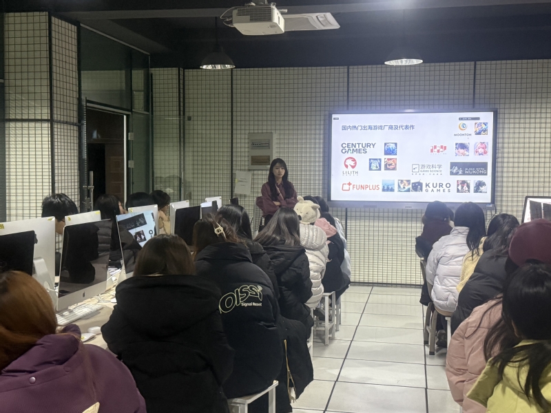 讲座中,董守业从自身经历出发,围绕投身游戏行业的原因、游戏行业在全球市场中的现状、游戏项目的开发流程、游戏行业中与数字媒体艺术专业相关岗位及其就业要求等核心话题,结合多样化案例展开了深入阐述。他不仅详细剖析了当前国内外不同类型游戏的差异,同时也从多个方面讲解了游戏行业中AI的具体应用情况。此外,董守业还结合学院数字媒体艺术专业课程,以词云图的方式展示并分析了对于数媒专业在游戏行业中策划类、开发类、美术类、技术类岗位的专业技能要求。最后,他从当前游戏厂商发展现状、自身学习经验与工作体验,建议同学们在学习过程找到热爱之处、结合自身专长、岗位匹配度与就业机遇等方面选择未来发展道路,为学院数媒学子专业学习和就业选择提供了指引。