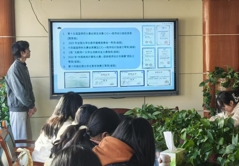 活动上,刘宇赟同学分享了他从初入大学时的迷茫探索,到最终确立清晰人生目标的励志成长之路。他特别强调了规划的重要性,指出信息获取、项目实践和竞赛参与在个人发展中的关键作用。通过分享自己在升学、保研、参与各类竞赛以及党团活动中的经历,刘宇赟同学展示了如何通过持续学习和实践来不断充实自我、提升个人能力。同时,作为中共党员,他还分享了“不断加强理论武装”带给自己的重要意义和成长。