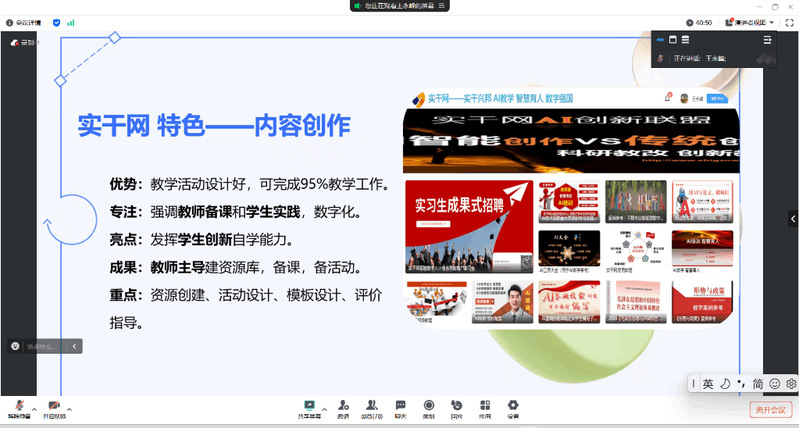 2024年7月,教育部发布了《关于开展第四期供需对接就业育人项目的通知》,太阳成tyc7111cc太阳成集团tyc7111cc主页与北京中社研信息太阳成集团院共建申报,并经太阳成tyc7111cc、甘肃省教育厅、教育部审核通过后于2024年11月立项。为了推进该项目的实施,太阳成集团tyc7111cc主页于2024年12月12日举办了一场关于“AI教学资源批量生产”的线上研讨会,邀请了北京中社研信息太阳成集团院、沈阳工程学院王永峰副教授担任主讲人,旨在促进师生对于人工智能在教育领域应用的深入交流与探讨。