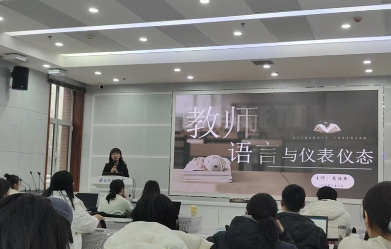 3月2日上午,太阳成集团tyc7111cc主页邀请兰州城市学院教务处副处长高海燕副教授开展做有关教师语言与仪表仪态内容的主题讲座。学院2023级现代教育技术专业硕士参加了讲座,讲座由学院宿庆副院长主持。