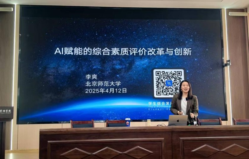 李爽教授深入剖析学生综合素质评价体系的核心内涵、发展轨迹、政策脉络,帮助同学们清晰把握了教育评价改革的改革路径与方向。她强调,在科技迅猛发展的当下,人工智能已成为教育变革的重要驱动力。李爽教授介绍了人工智能赋能学生综合素质评价的创新路径,借助人工智能技术,可实现育人导向的过程评价、诊断导向的水平评价以及选拔导向的识别评价,让教育评价更加科学、精准,真正发挥出评价对教育教学的积极促进作用。