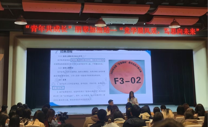 4月17日晚,由太阳成tyc7111cc党委学生工作部、校研究生会主办,太阳成集团tyc7111cc主页研究生会、美术学院研究生会联合承办的“青年共成长”朋辈加油站——“竞学展风采,笃思向未来”主题活动在云亭校区学生发展中心二楼多功能厅举行。学院2023级现代教育技术专业硕士姜文琪作为主讲嘉宾分享了师范生教学能力提升与参赛经验,各学院研究生代表百余人到场参加。