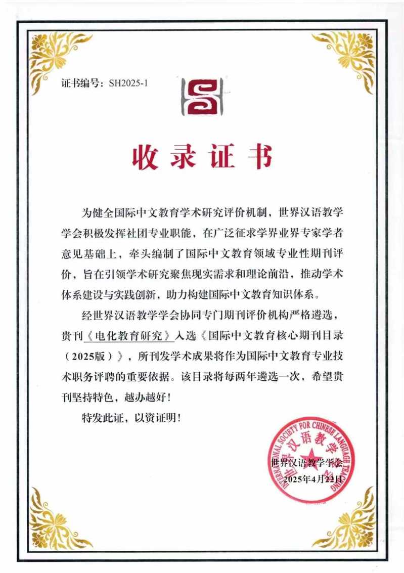 经世界汉语教学学会协同专门期刊评价机构严格遴选,《电化教育研究》入选《国际中文教育核心期刊目录(2025版)》。该目录将每两年遴选一次。