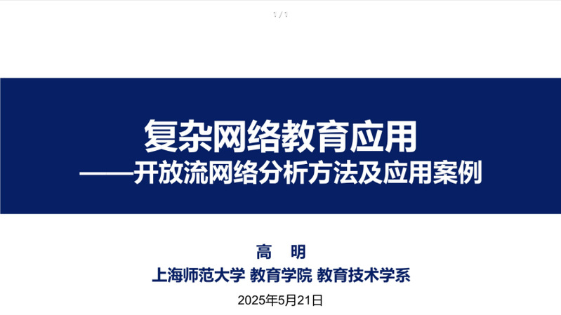 5月21日晚,学院邀请上海师范大学高明博士在线做题为“复杂网络教育应用开放流网络分析方法及应用案例”的讲座。学院部分教师、全体硕博生参加了此次学术报告活动,讲座由学院郭婉瑢博士主持。