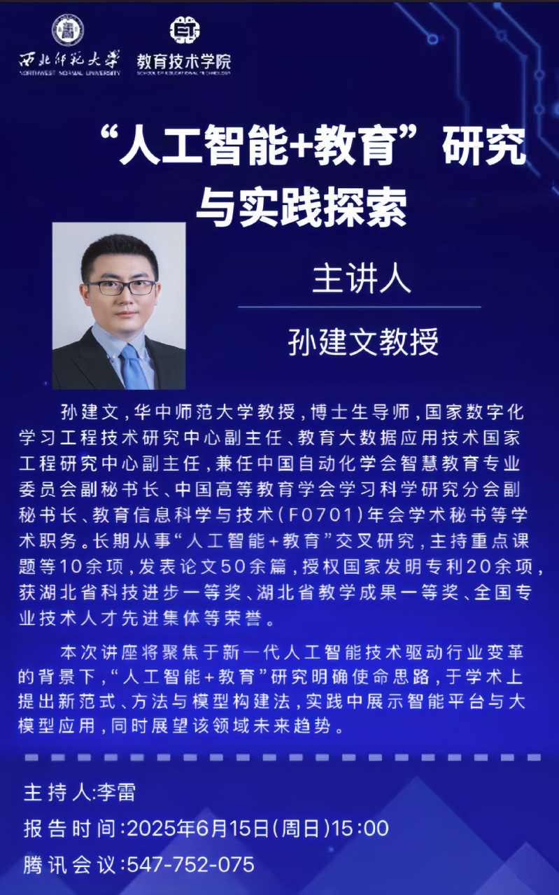 本次讲座将聚焦于新一代人工智能技术驱动行业变革的背景下,“人工智能+教育”研究明确使命思路,于学术上提出新范式、方法与模型构建法,实践中展示智能平台与大模型应用,同时展望该领域未来趋势。