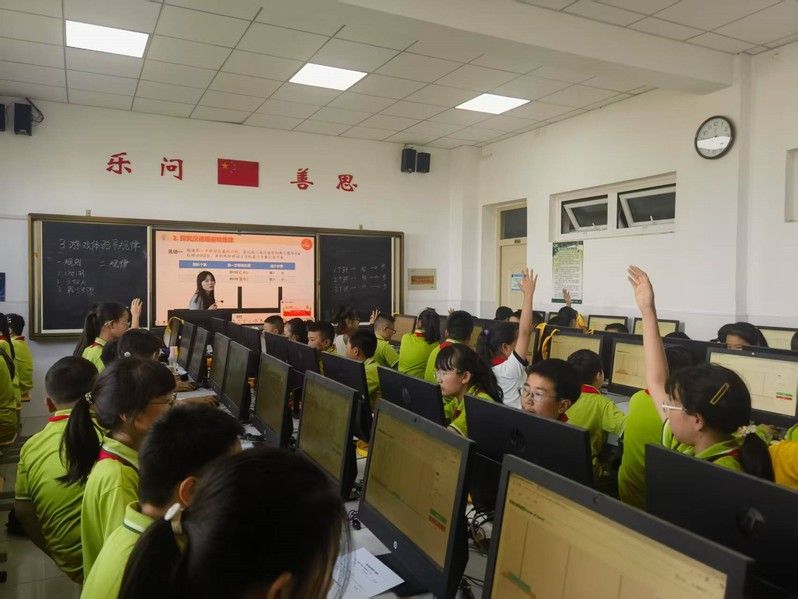 王文君副教授深入五年级信息科技课堂,认真观摩了学院现代教育技术专业硕士研究生邵雨馨执教的《游戏体验寻规律》一课。本节课以经典的“汉诺塔”数学游戏为核心载体。实习教师引导学生亲自动手操作汉诺塔模型,在遵守特定规则(一次只移动一个圆盘、小圆盘上不能放大圆盘)的挑战中,观察、记录并总结圆盘移动的规律和有效策略。通过层层递进的游戏任务,学生们在动手实践、小组讨论和问题解决的过程中,逐步理解了“算法”这一抽象概念的核心——即解决问题的明确、有限的步骤集合,并尝试描述和优化解决汉诺塔问题的具体算法步骤。课堂气氛活跃,学生参与度高,充分展现了实习教师利用游戏化学习策略将理论应用于实践的探索精神。