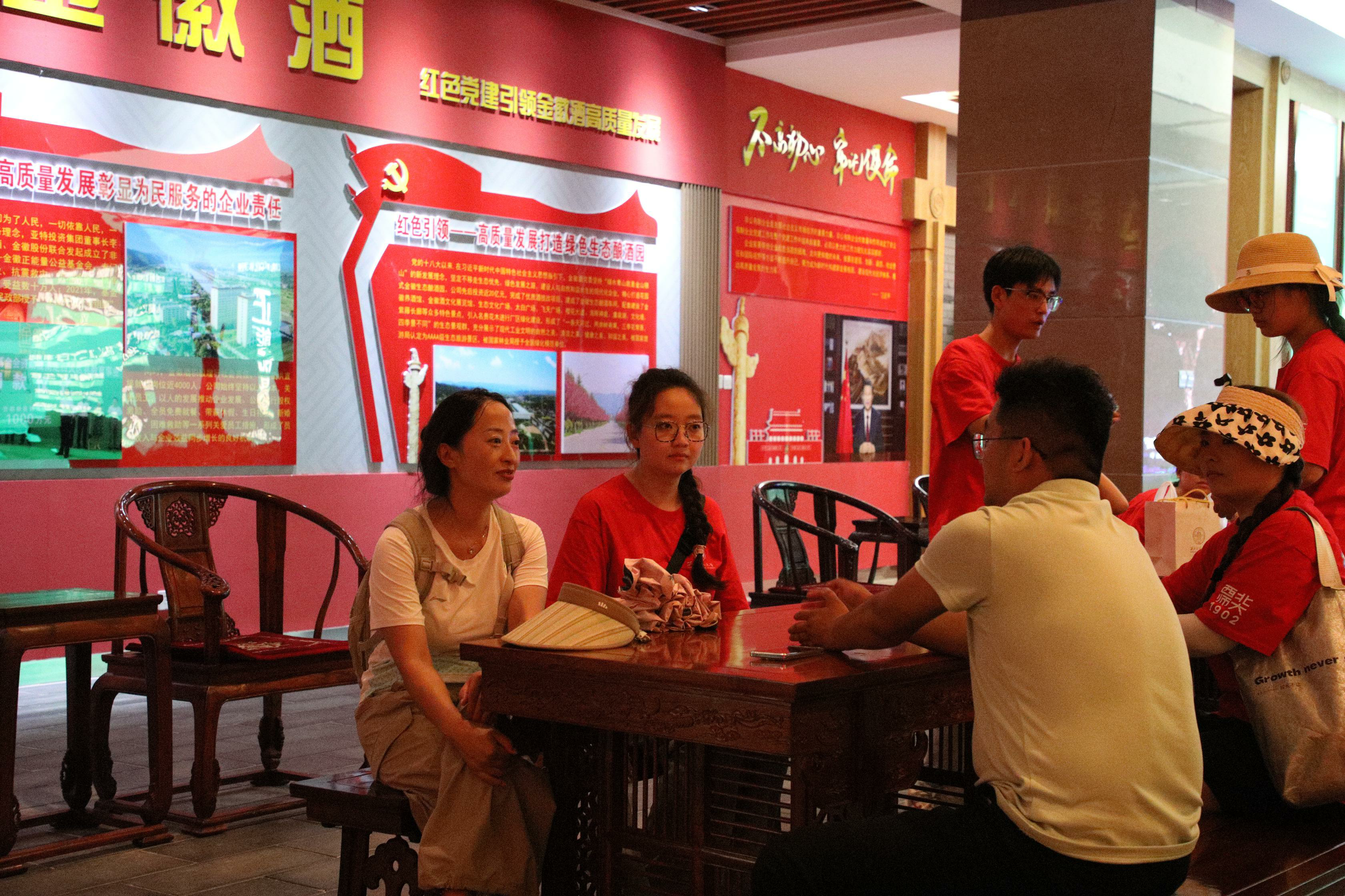 在酒文化展览馆中,讲解员带领实践团成员们追溯金徽酒的发展脉络:从依托徽县独特生态环境起步,到引入“三低三长”传统工艺筑牢品质根基,再到以数字化系统实现生产智能化升级,都体现着“立足实际、开拓创新”的智慧。这种在传承中突破的历程,恰似长征路上“实事求是、灵活应变”的战略思维,为企业持续发展注入动力。