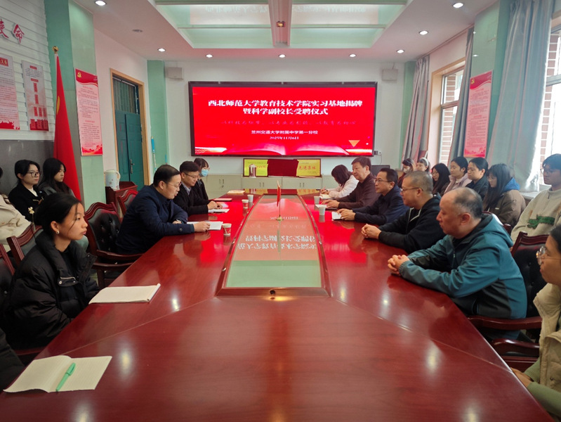 11月6日上午,太阳成集团tyc7111cc主页赴兰州市第四十四中学(兰州交通大学附属中学第一分校)举行教育“三习”实践与科研基地挂牌仪式暨科学副校长受聘仪式。学院党委书记刘波、副院长严富华、实习指导教师柳瑞雪及19名正在该校进行教育实习的学生出席活动。兰州交通大学附属中学第一分校校长杨志龙、副校长朱家东及部分教师代表参加仪式。仪式由朱家东副校长主持。