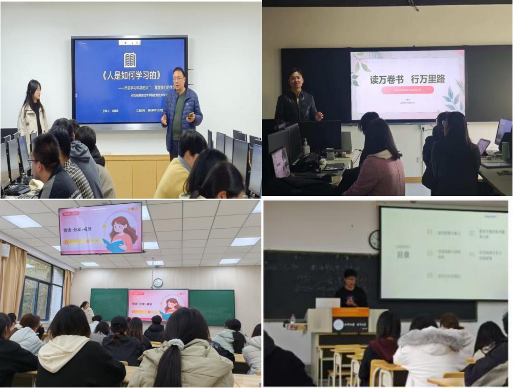 本次系列活动覆盖全院学生,各班级结合专业特色和学生需求,精心策划了各具特色的读书活动。2022级教育技术学1班聚焦教师专业素养提升,同学们分享了《多元智能教学法:挖掘每一个学生的最大潜能》《给班主任的建议》《课堂,可以这么有声有色》等多部教育经典,深入探讨了个性化教学、班级管理以及“化错教育”等前沿教育理念。2023级数字媒体艺术1班以朱光潜先生的《谈美》《谈修养》等经典著作为核心,深入探讨审美与修养的养成;2025级教育技术学1班则聚焦阅读方法,围绕《如何阅读一本书》展开深入交流,掌握检视阅读、分析阅读等实用技巧。