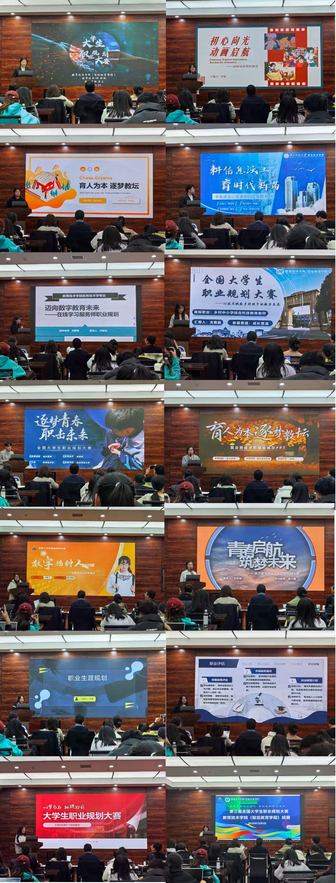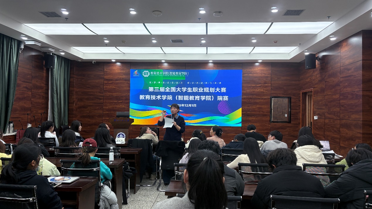 本次大赛以“筑梦青春志在四方,规划启航职引未来”为主题,旨在为学生搭建展示自我、规划未来的平台,助力学子在职业道路上找准方向、稳步前行。比赛现场,参赛选手们结合自身专业特色与职业愿景,从自我认知、职业环境分析、发展路径规划等多个维度展开精彩阐述。他们或聚焦智能教育领域的创新应用,或深耕教育技术的实践探索,展现出新时代大学生清晰的职业定位与积极的奋斗姿态。评委老师则从专业视角出发,对选手的规划方案进行细致点评,并提出针对性的优化建议,让在场学生受益匪浅。